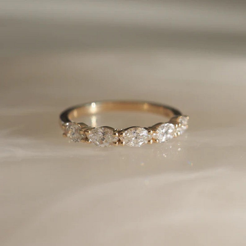 This 2.03 Ct Marquise Moissanite Triple Bridal Set is a stunning choice for any bride-to-be. With a sparkling marquise-cut moissanite stone and a triple band design, this set exudes elegance and sophistication. Plus, it is a more affordable and ethical alternative to traditional diamond rings. Make a statement on your special day with this unique and beautiful bridal set.